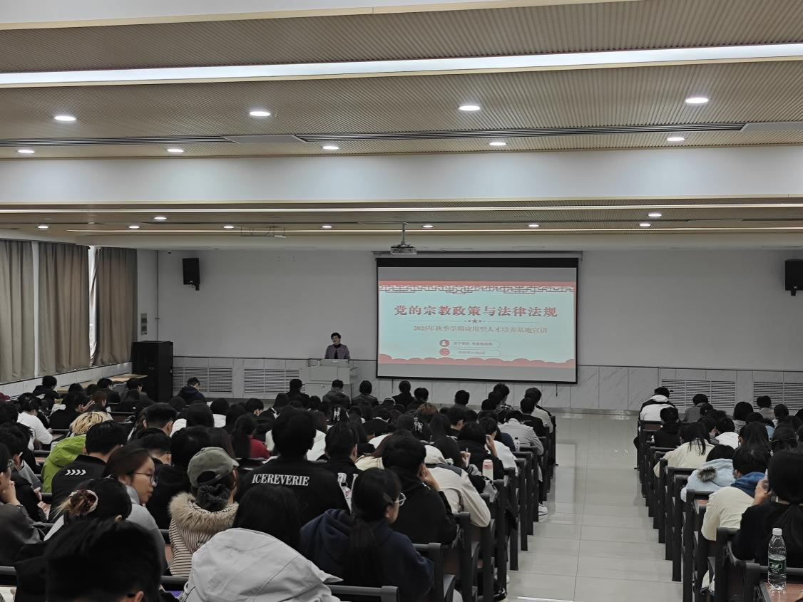 为深入学习贯彻习近平总书记关于宗教工作的重要论述,增强大学生对宗教政策法规的理解,11月6日下午,应用型人才培养基地举办党的宗教政策与法律法规宣讲会,特邀请校党委统战部副部长丰琳琳主讲。应用型人才培养基地主任苑壮东,副主任李爱兰,部分教师及学生近300人参加。宣讲会由基地团委(学生科)书记(科长)姚海生主持。