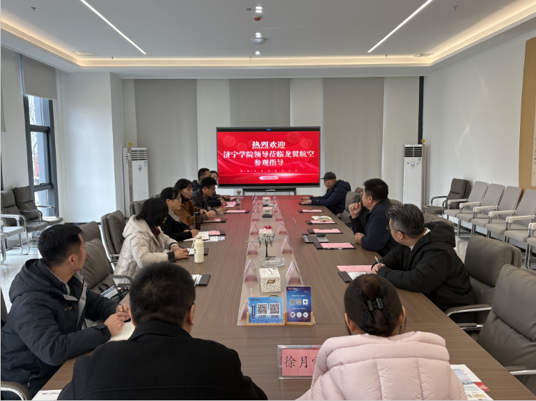 苑壮东一行首先参观了企业展厅,观看了山东龙翼航空科技有限公司宣传片,详细了解了山东龙翼航空科技有限公司的历史沿革、主营业务、科技创新成果以及近年来取得的成绩。在随后的座谈会上,山东龙翼航空科技有限公司总经理杨则允对苑壮东一行表示热烈欢迎,并重点介绍了公司发展历程、业务布局、企业文化及人才需求规划,希望以此次座谈为契机,进一步加强双方在校企合作、人才培养、产教融合领域开展全方位合作,实现优势互补、互利。武泉林介绍了学院办学概况、学科专业建设、人才培养体系等情况,重点阐述了学院在测绘工程、应急救援等领域的专业特色与发展愿景,表达了与企业携手共育高素质应用型人才的殷切期望。会上,双方围绕人才培养模式创新、科技创新协同攻关、校企合作长效机制建设、产教深度融合路径等议题展开深入探讨,并达成初步合作意向。